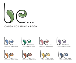 this candy company is candy with enhancers to help you "be...energized" or "be...relaxed" or "be... happy" this logo reflects an organic candy like feel with 9 colors to rotate around with the 9 different enhancers.