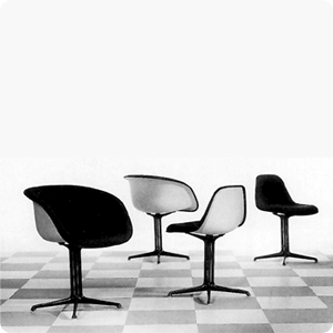 1961-The chairs were made of reinforced fiberglass and were molded in shapes similar to those of the 1951 plastic armchairs and sidechairs. They were made for the La Fonda del Sol restaurant.